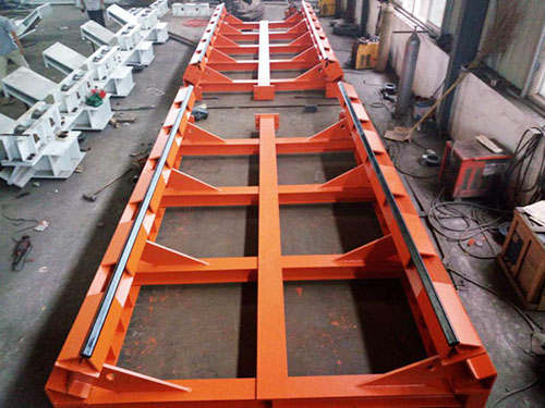 始发基座采用钢结构形式,主要承受盾构机的重力荷载和推进时的摩擦力,结构设计还需考虑盾构推进时的便捷和结构受力。由于盾构机重达400多吨,所以始发基座 具有足够的刚度、强度和稳定性。始发基座设计全长9.0m,宽3.753m。